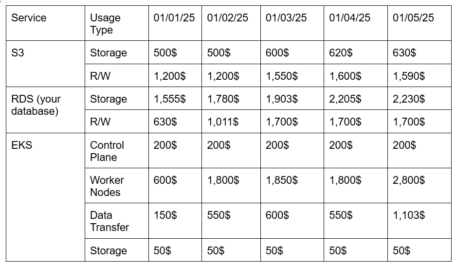 The action is very simple - have a histogram / table of your team’s cloud costs that everyone can see.
