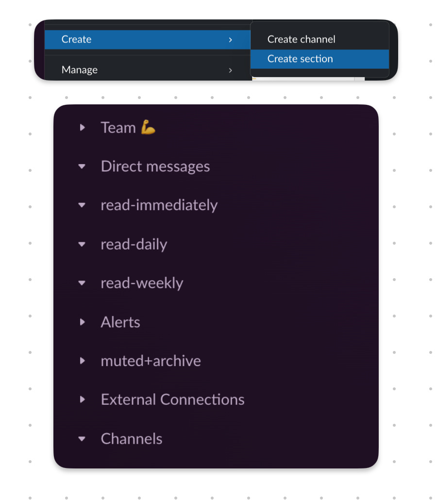 Great tips. Reducing noise is the key, for me I even went a step further and installed Chirpy for macOS, it lets me set different notification sounds for different channels/keywords, so low priority goes “tap” and higher priority goes “ding” and so on, highly recommend for staying sane 🧘🏼♂️