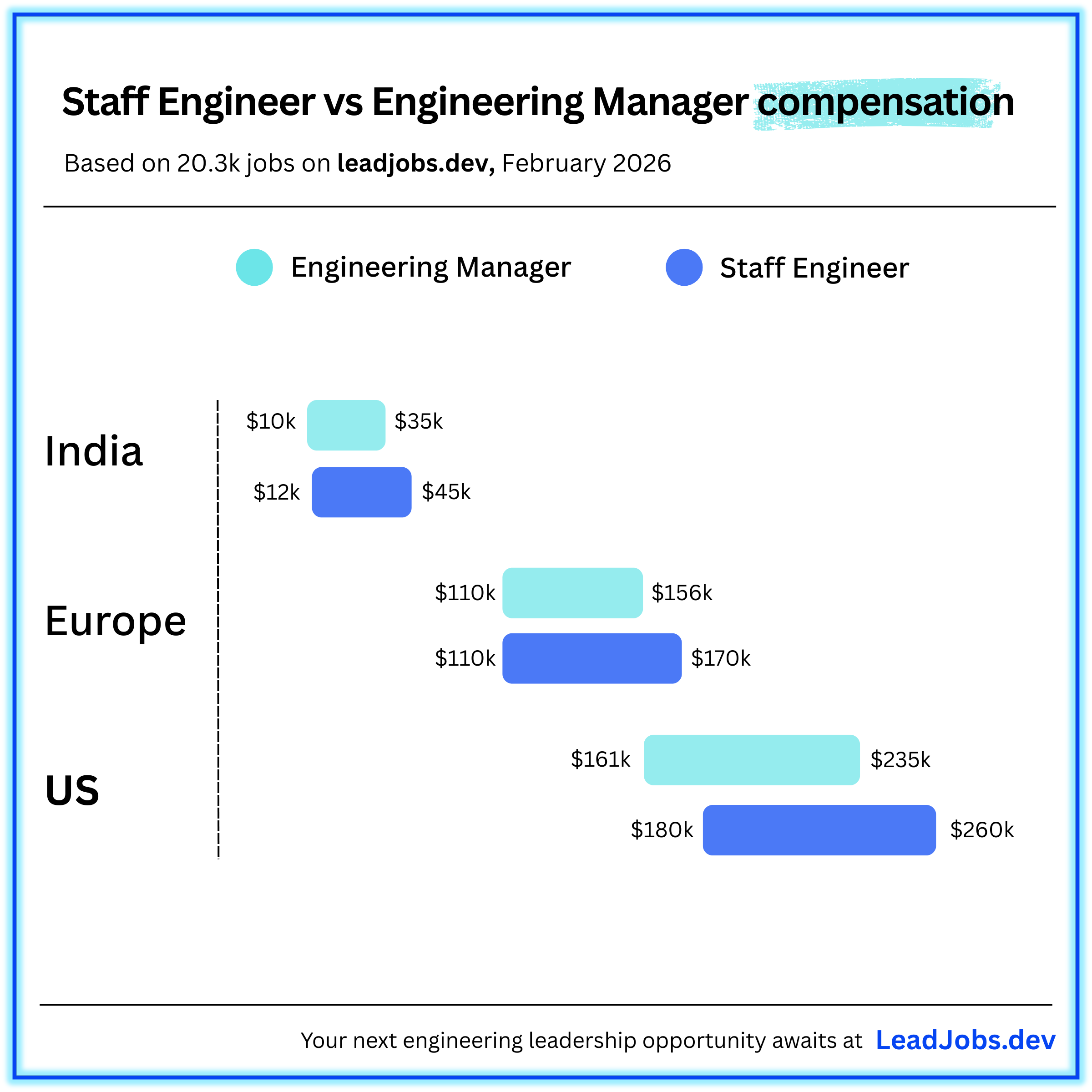 This surprised him. The assumption has always been that management pays more. It does, if you compare an EM to a Senior Engineer at the same company. But when you compare across the industry, being a Staff engineer is better paid. I believe it’s because those engineers are in huge demand (and will continue to be so).