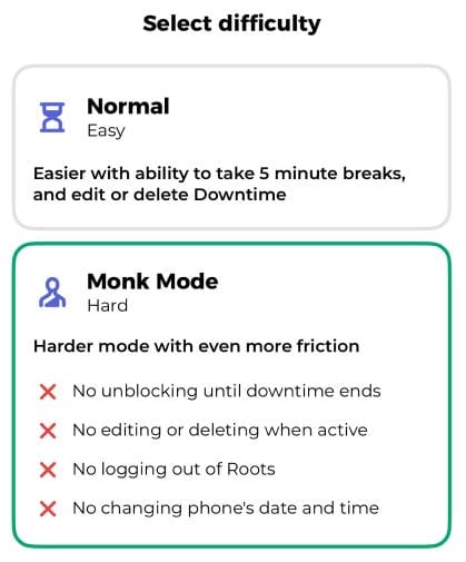 So I’ve looked for the best app I could find. The monk mode of ‘Roots’ is exactly what I was thinking about: