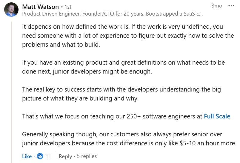 Hiring juniors vs seniors