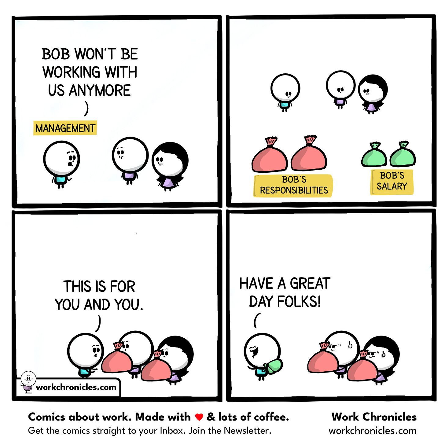 You are expected to “be a team player”, be more productive, work more. And if you don’t like it? You can go, it’s “Employer’s Market” right now. We’ll find someone else.