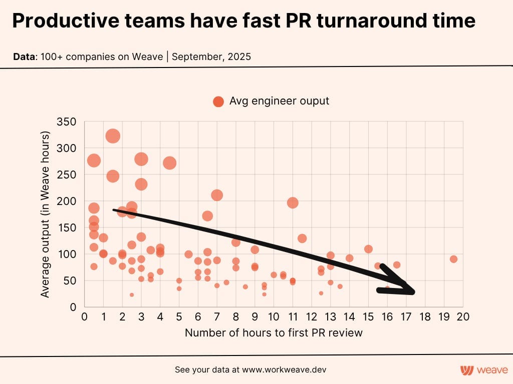Teams reviewing PRs in under 3 hours are 2.1x more productive than teams taking 8+ hours!
