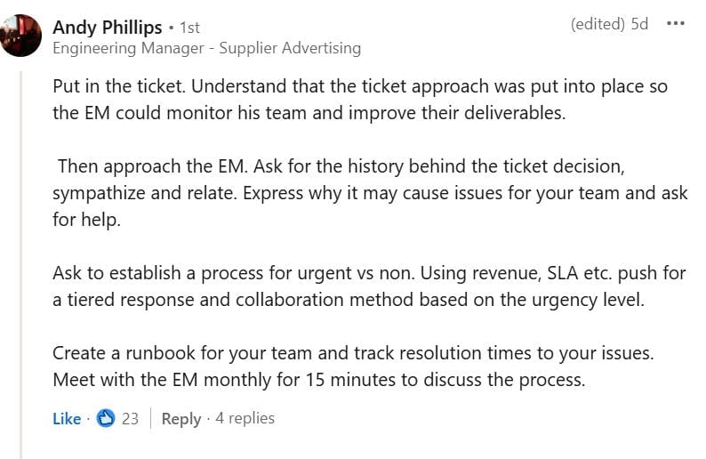 There were many interesting answers in the LinkedIn post, here’s my favorite one:
