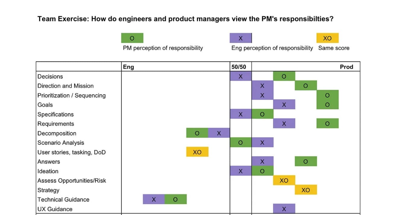 In this type of ‘balanced’ relationship, each side has its own responsibilities. You get your tech debt time and the PM doesn’t bother you, and you don’t have a say in the product roadmap.